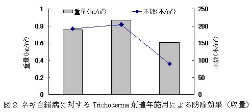 図2 ネギ白絹病に対するTrichoderma剤連年施用による防除効果(収量)