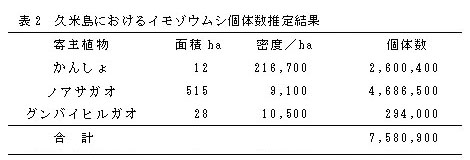 表2 久米島におけるイモゾウムシ個体数推定結果