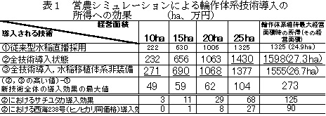 表1 営農シミュレーションによる輪作体系技術導入の所得への効果(ha、万円)