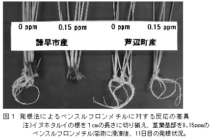図1 発根法によるベンスルフロンメチルに対する反応の差異