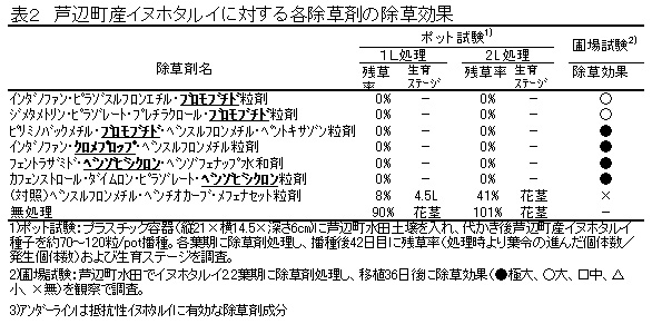 表2 芦辺町産イヌホタルイに対する各除草剤の除草効果