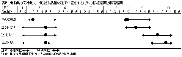 表5 熊本県の高冷地で一地域多品種の種子生産をするための移植適期と収穫適期