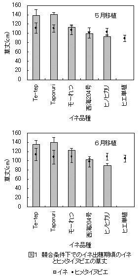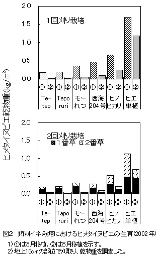 図2 飼料イネ栽培におけるヒメタイヌビエの生育(2002年)