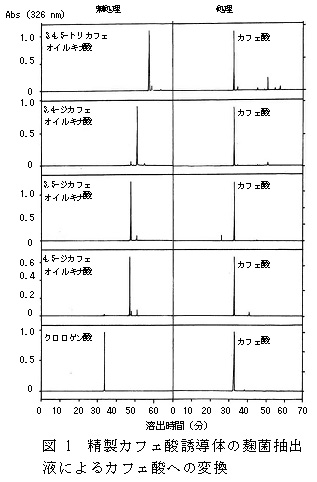 図1 精製カフェ酸誘導体の麹菌抽出液によるカフェ酸への変換