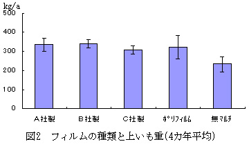 図2 フィルムの種類と上いも重(4カ年平均)