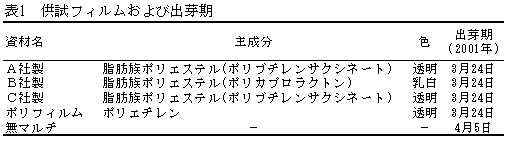 表1 供試フィルムおよび出芽期