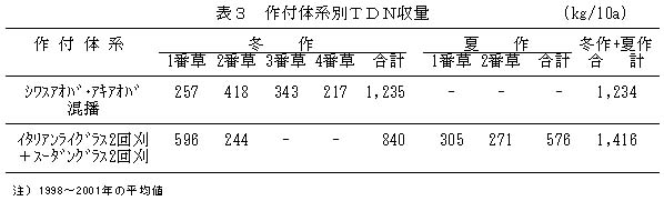 表3 作付体系別TDN収量(kg/10a)