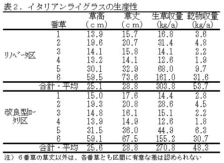 改良型追播機により、リノベータと同等の追播効果がある(表2)。
