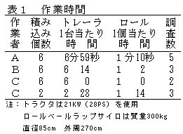 - 2個及び6個積みトレーラへの積み込み作業時間は、作業者1名でロールベールラップサイロ1個につき1分程度である(写真、表1)。