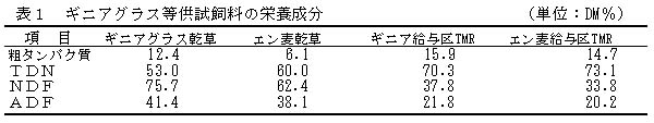 表1 ギニアグラス等供試飼料の栄養成分(単位:DM%)