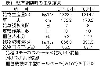 表1 乾草調製時の主な結果