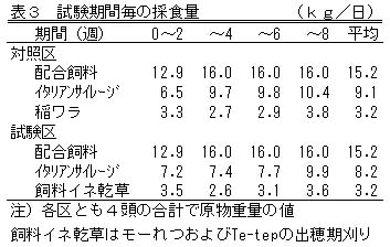 表3 試験期間毎の採食量