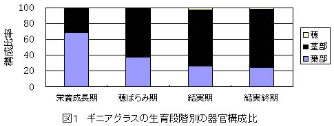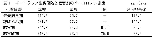 表1 ギニアグラス生育段階と器官別のβーカロテン濃度