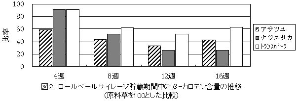 図2 ロールベールサイレージ貯蔵期間中のβ-カロテン含量の推移
