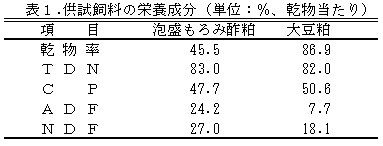 表1 供試飼料の栄養成分(単位:%、乾物当たり)