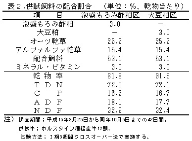 表2 供試飼料の配合割合(単位:%、乾物当たり)