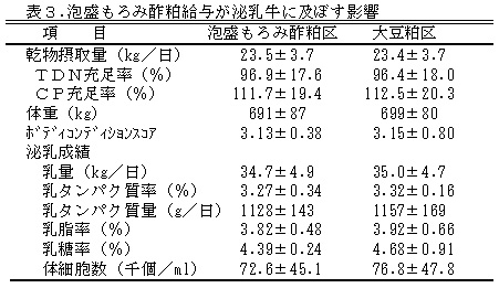 表3 泡盛もろみ酢粕給与が泌乳牛に及ぼす影響