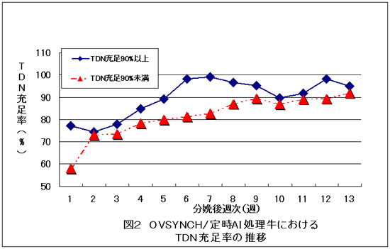 図2 OVSYNCH/定時AI処理牛におけるTDN充足率の推移