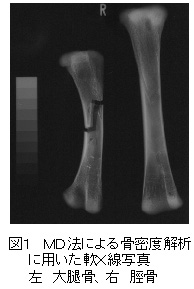 図1 MD法による骨密度解析に用いた軟X線写真(左大腿骨、右脛骨)
