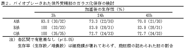 表2 バイオプシーされた体外受精胚のガラス化保存の検討