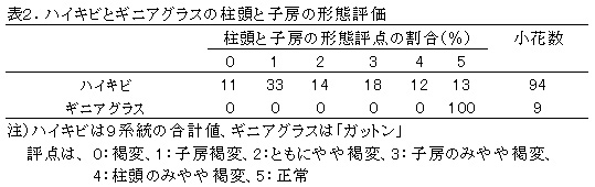 表2 ハイキビとギニアグラスの柱頭と子房の形態評価