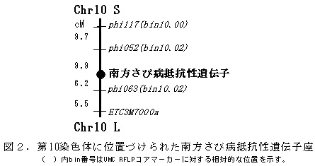 図2 第10染色体に位置づけられた南方さび病抵抗性遺伝子座