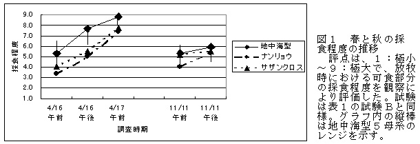 図1 春と秋の採食程度の推移