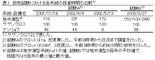 表1 放牧試験における各系統の採食時間の比較1)
