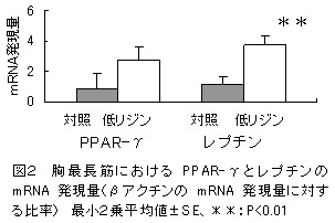 図2 胸最長筋におけるPPAR-γとレプチンの mRNA発現量
