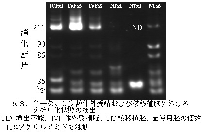 図3 単一ないし少数体外受精および核移植胚におけるメチル化状態の検出