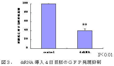 図4 dsRNA導入によるGFP遺伝子発現抑制