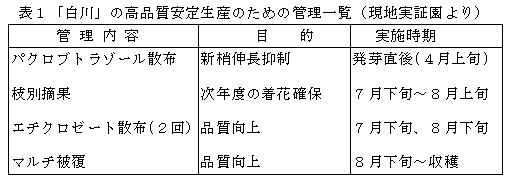 表1 「白川」の高品質安定生産のための管理一覧(現地実証園より)