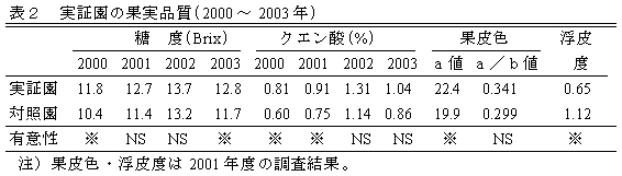 果実品質は、糖度が高く、果皮の赤味が強い。また、浮皮も少ない果実が生産できる(表2)。