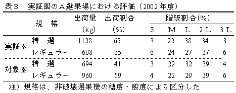 出荷果実は、特選果実の割合が高く、収益の増大が見込まれる(表3)。