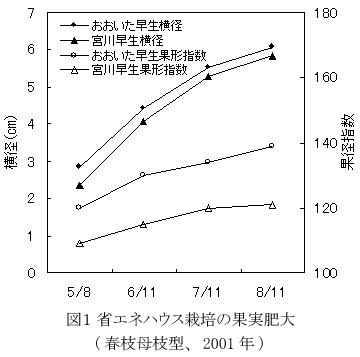 果実肥大は「宮川早生」に比べてやや早く、果形は扁平である(図1)。