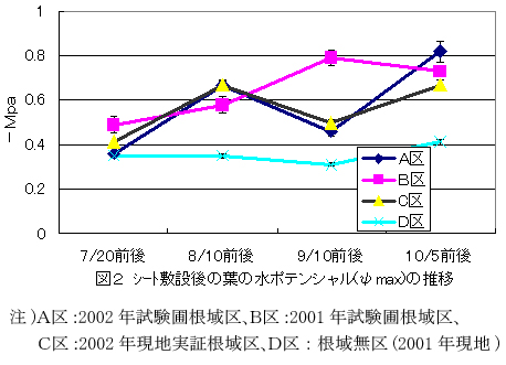 図2 シート敷設後の葉の水ポテンシャル(ψmax)の推移