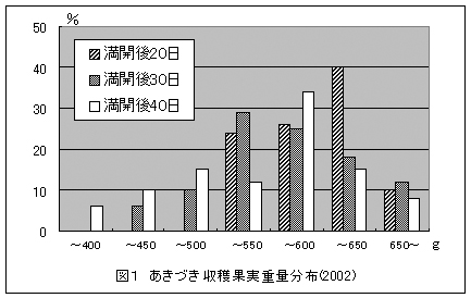図1 あきづき収穫果実重量分布(2002)
