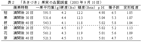 表2 「あきづき」果実の品質調査(2003年9月10日)