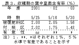 表3 収穫期の葉中窒素含有率(%)