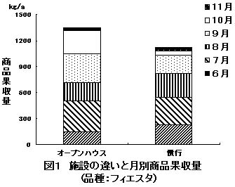 図1 施設の違いと月別商品果収量(品種:フィエスタ)