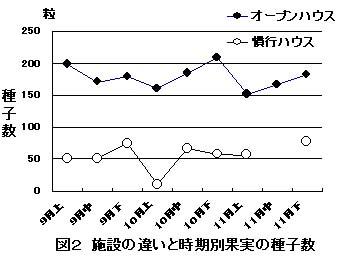 図2 施設の違いと時期別果実の種子数