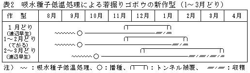 表2 吸水種子低温処理による若掘りゴボウの新作型(1〜3月どり)