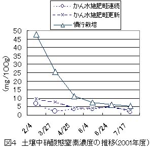 図4 土壌中硝酸態窒素濃度の推移(2001年度)