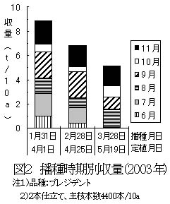 図2 播種時期別収量(2003年)