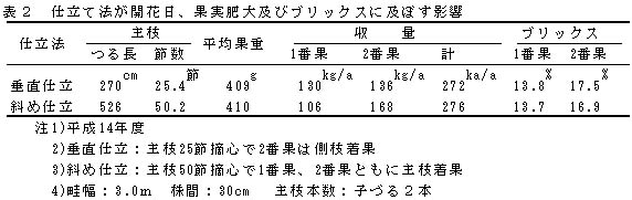 表2 仕立て法が開花日、果実肥大及びブリックスに及ぼす影響