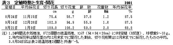 表3 定植時期と生育・開花 2001