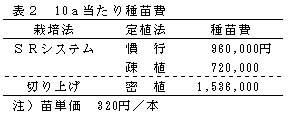 これを、従来の切り上げ栽培の種苗費1,536,000円に比べると、47%に大幅に低減することができる(表1、表2)。