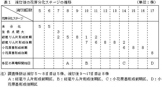 表1 消灯後の花芽分化ステージの推移(単位:株)