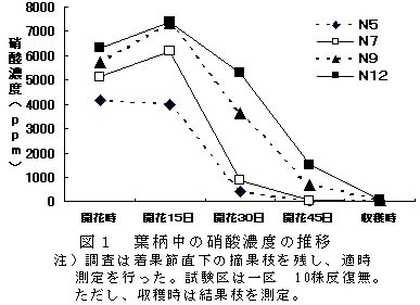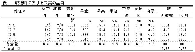 糖度は株当たりN成分9g以上で安定し、これより少ないと低下する(表1)。