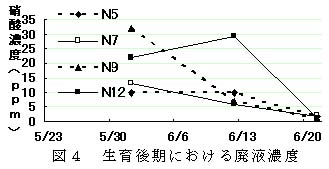 生育後期における廃液濃度は、株当たりN成分12gで他の区と比較して高めに推移する(図4)。